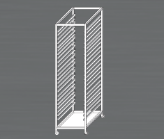Konstrukci vozíku tvoří jeklový rám se dvěma sekcemi opor pro gastronádoby GN 1/1 (v každé sekci 18 párů opor) ve spodní části je přivařena zpevňující trnož a upnutá pojezdová otočná kolečka z nichž jsou dvě opatřena aretační brzdou. Celková nosnost vozíku je 150kg.