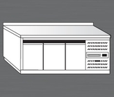 Chladící stoly se vyrábějí v provedení s jednou až čtyřmi chlazenými sekcemi s různou kombinací dveří a zásuvek. Konstrukci tvoří dvojitý plášť vyplněný polyuretanovou izolací s různou kombinací dvířek a zásuvek. Zásuvky se vyrábějí buď v kombinaci 345/345, 360/285 nebo 455/190 - hodnoty uvádějí maximálně možnou výšku láhve. U provedení se dvířky je uvnitř umístěna děrovaná přestavitelná police. Modul je umístěn na soklu 40 mm vysokém a je krytý rovnou horní deskou tl. 40 mm se zadním lemem. Za středovým sloupkem v chlazeném prostoru je zavěšen výparník s nuceným oběhem, chladící agregát je umístěn ve skříňce vpravo. Na prohnutém panelu skříňky agregátu je umístěn hlavní vypínač a digitální termostat, který řídí činnost chladícího agregátu. Termostat je výrobcem nastaven na teplotu +4°C a umožňuje zákazníkovi změnu v rozmezí +2 až +10°C. S digitálním termostatem je třeba manipulovat pouze podle návodu a pravidelně čistit kondenzátor agregátu, ke kterému je přístup z čela skříňky.